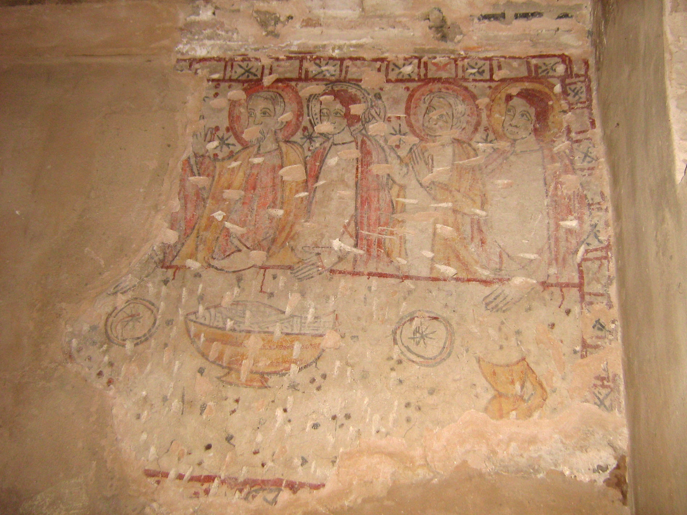 Representan una serie de escenas, entre ellas la Última Cena y figuras de animales opuestos por detrás, muy del gusto oriental. Se han considerado las pinturas de tipo románico más meridionales de las halladas hasta ahora en Europa.