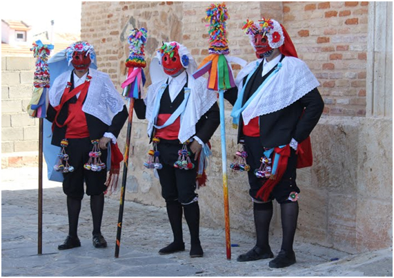 Lo que sí es muy probable son sus comienzos paganos y su posterior adaptación por parte de la iglesia al culto religioso, siendo considerado hoy en día como un auto sacramental. No obstante, es imposible negar influencias exteriores: el colorido de sus ropas, el embriagador y tribal sonido del tambor en perfecta consonancia con las sonajas y las porras y sus arcaicas caretas de rasgos pronunciados. El resultado es una composición monótona de danza y color que fascina y atrae a partes iguales.